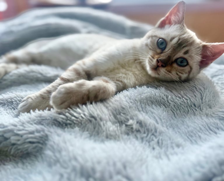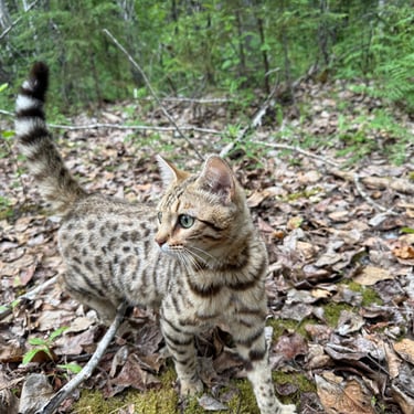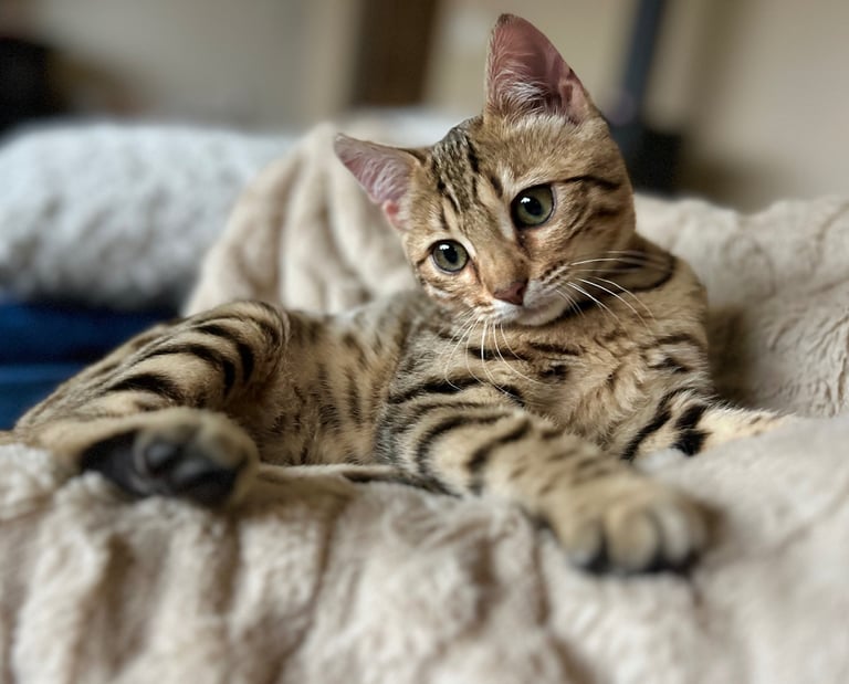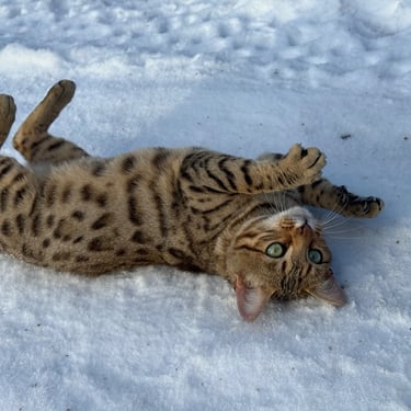 Our first two Bengal Kitties flew to us all the way from a cattery in Hungary & we became a registered cattery with TICA as "Brightgalaxies Bengals". We no longer breed registered kitties but we do occasionally have purebred kittens available.